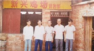 创业初期的温氏鸡场销售部员工合影(左二为温北英、左一为温均生)