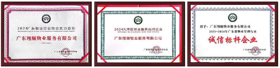 广东翔顺物业服务有限公司(2001年成立)系翔顺控股集团旗下核心子公司之一,也是云浮地区最早成立的专业物业企业之一。公司以物业服务为核心,延伸发展安防工程、电梯维保等多元化业务,持有3A信用等级及环卫、安防、电梯等多项行业资质。作为省/市物协重要成员单位,2024年斩获大湾区物业服务品牌企业等多项行业殊荣。