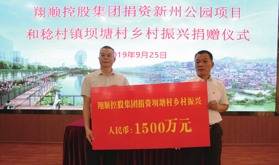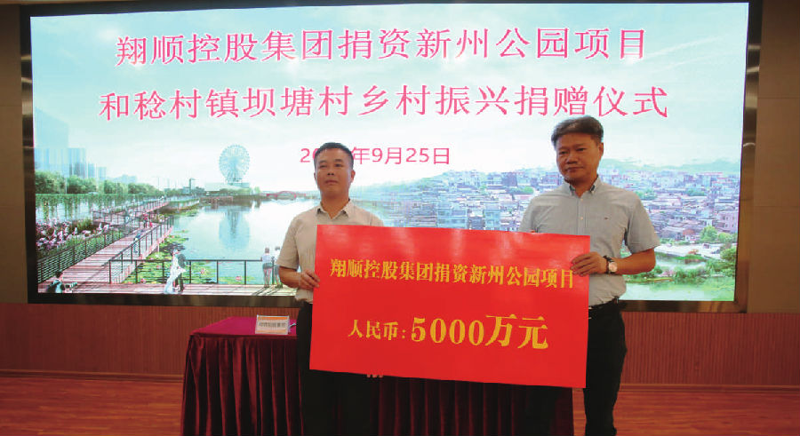 翔顺控股集团致力投身市政工程公益,先后建设翔顺一桥、翔顺二桥、东堤路、翔兴路、黄塘桥等一大批市政工程,助力新成工业区、金台山公园、坝塘新农村等多个民生项目建设,并在2019年捐资5000万元建设新州公园,为新兴县的交通发展、市容市貌、产业转移做出了应有的贡献。