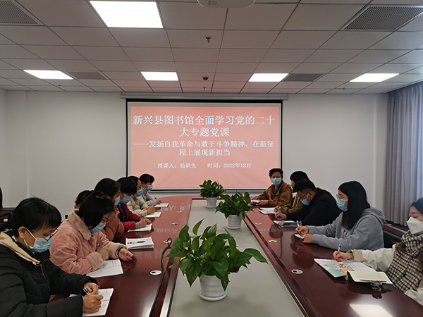 2022年12月9日新兴县图书馆全面学习党的二十大专题党,发扬自我革命与敢于斗争精神,在新征程上展现新担当 (图书馆会议室)