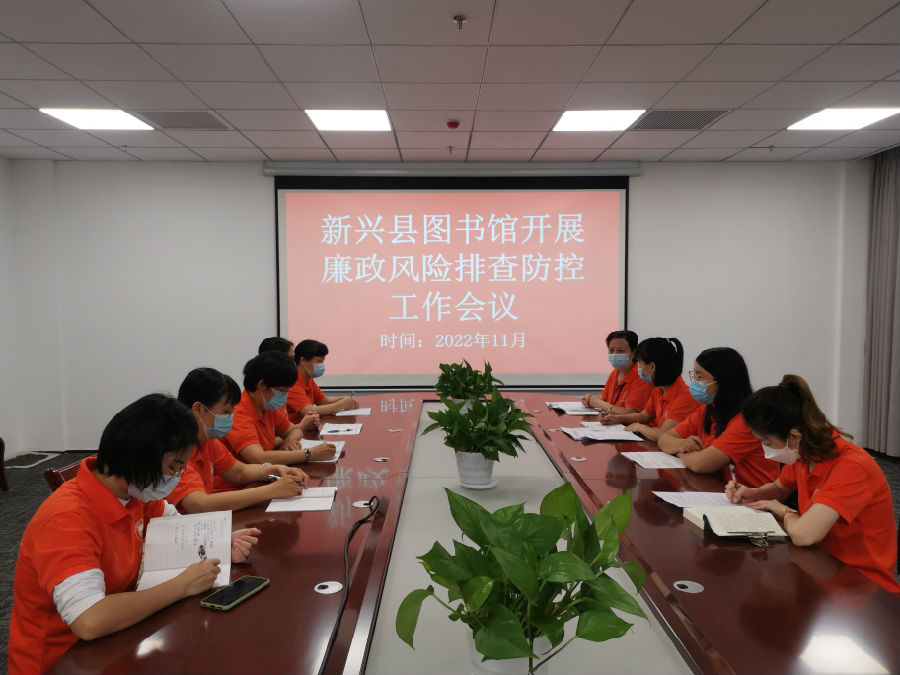 2022年11月23日新兴县图书馆开展廉政风险排查防控工作会议(县图书馆会议室)