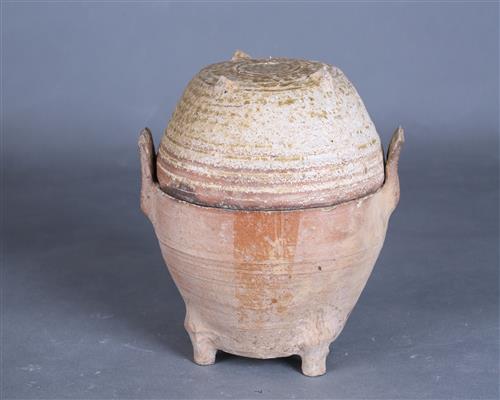 汉青釉双耳三足带盖鼎