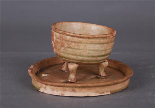 南朝青釉带盘三足炉