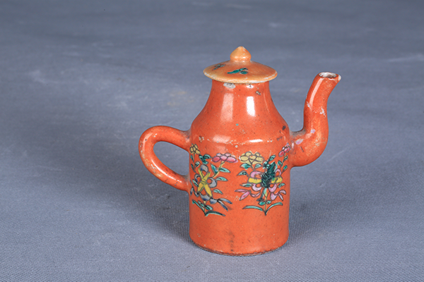 清矾红彩花卉纹带盖执壶