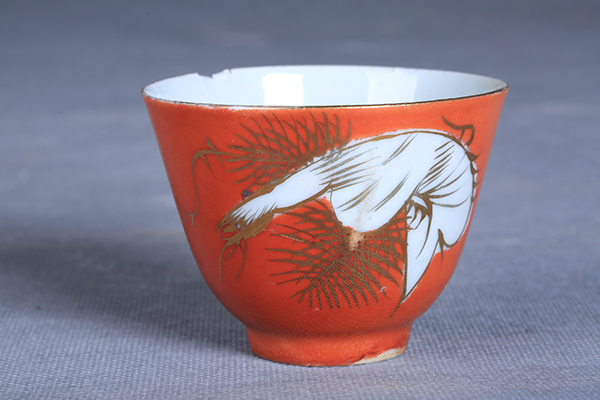清矾红彩松鹤纹酒杯