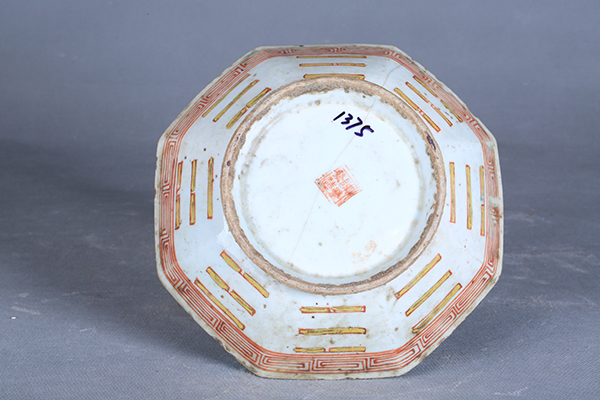清粉彩八卦纹八角碗