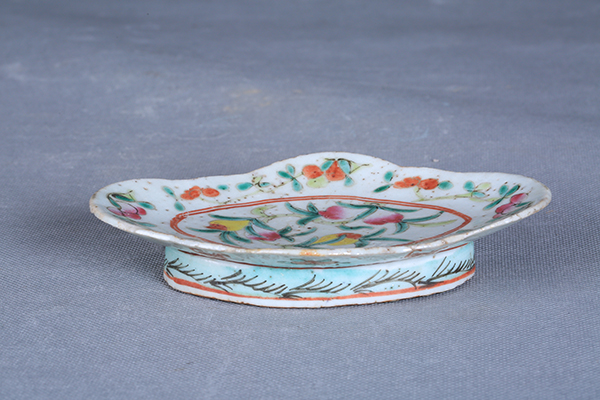 清粉彩花卉纹海棠形盘
