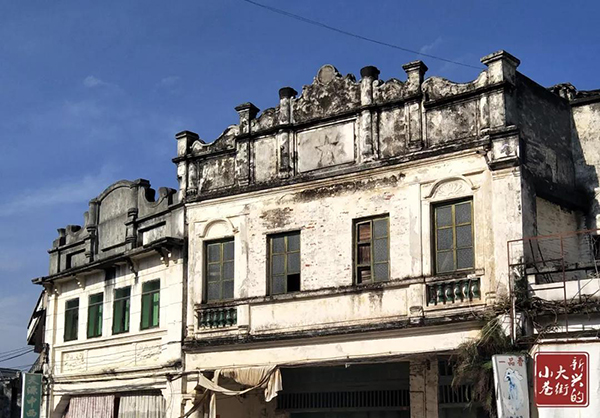 古老的骑楼与新时代的广告牌形成强烈的对比