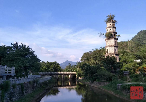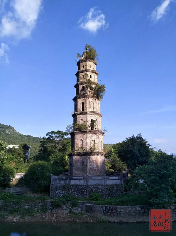 位于天堂镇内洞盆地进出口的三庙口花塔,是新兴新八景之《古塔春晖》